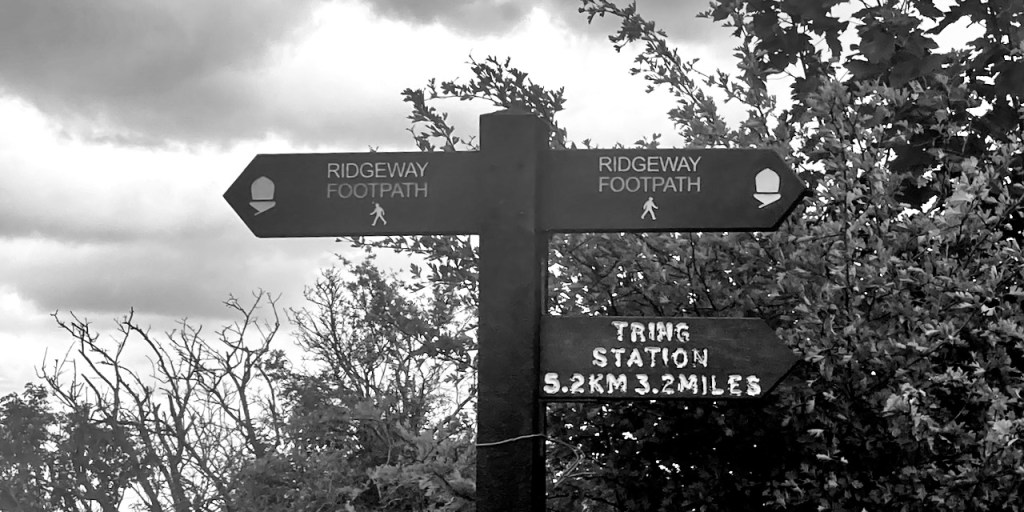 Climb to Liddington Castle, a third iron age fort (9.5 miles/15.2 km). Here we leave the Ridgeway and head for Chiseldon, walking around the south rampart then taking the path north down the hill to the road. Go left along a short section of (again busy) road to the A346 junction. Cross at the junction with the Three Trees cafe on your left (11 miles/17.5 km). Take the track to the right (sp Chiseldon ½) and continue along Station Road to the bus stop opposite the Landmark Hotel. Or you could call a taxi from the cafe, which was easy when I did it, and it’s less than 15 minutes to the station.